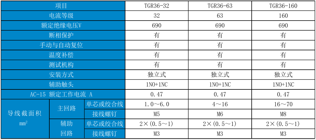 TGR36系列热过载继电器(以下简称继电器),适用于交流50Hz(或60Hz)、工作电压至690V及以下、电流至160A的长期工作或间断长期工作的交流电动机的过载保护和断相保护之用。该热继电器只有独立安装方式,可与CJT1系列接触器组成TGS51系列电磁起动器。符合标准:GB/T 14048.4、GB/T 14048.5、IEC 60947-5-1
